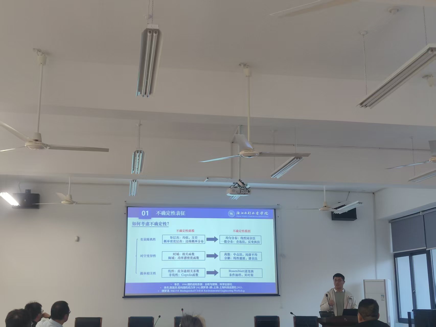 吴凌旭博士以《不确定性表征、量化方法—以区域高速铁路网震后通行能力评估为例》为题,展示了前沿的科学研究方法。吴博士深入浅出地介绍了在复杂工程系统中,如何利用神经网络代理模型等先进工具对不确定性进行表征和量化,并以区域高速铁路网在地震后的通行能力评估为具体案例,生动演示了该方法的应用流程与价值,展现其严谨的科研思路与创新的方法。