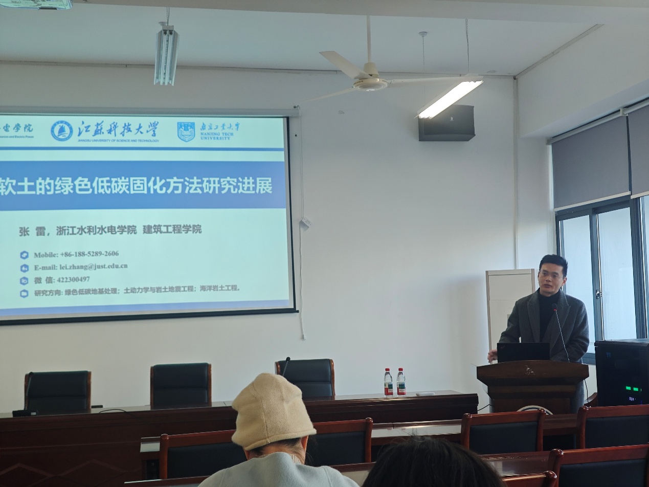 2025年11月26日,建筑工程学院“水韵建工”学术沙龙第五期在学院报告厅顺利举办。本期沙龙邀请三位青年学者围绕环境岩土工程、低碳地基处理及实验教学改革等热点领域展开分享和深入交流,会议由学术副院长宋杰主持,吸引了众多师生参与,现场学术氛围热烈。